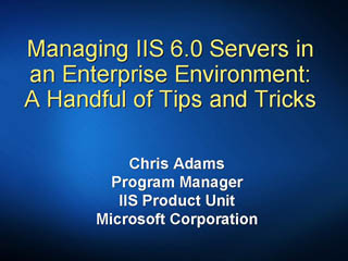Managing IIS 6.0 Servers in an Enterprise Environment: A Handful of Tips and Tricks.