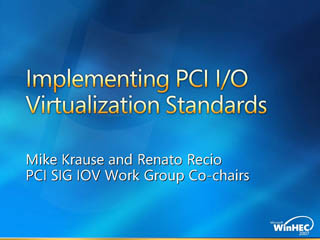 PCI I/O Virtualization Standards: Implementation